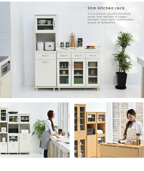 ■本体サイズ[外寸]幅45×奥行44.5×高さ156cm■その他サイズ[内寸] (スライド部)幅38×奥行33.5×高さ37cm (スライド引き幅)21.5cm (扉内)幅38.5×奥行38×高さ34.5cm (引き出し)幅35.5×奥行33×高さ6(有効7.5)cm (ペール)幅20.5×奥行30×高さ36.5cm (可動棚)幅40.5×奥行36×厚み1.8cm(3.2cmピッチ3穴)■材質[天板]合成樹脂化粧合板(PVC) [前板]合成樹脂化粧パーティクルボード(PVC) [本体]プリント紙化粧合板 [ガラス]生ガラス■収納量・耐荷重[天板]約10kg以下 [可動棚]約10kg以下 [スライド]約9kg以下 [引き出し]約5kg以下 [フラップダウン扉]約5kg以下■備考・可動棚:1枚 ・14Lペール2個付き ・背面化粧有り ・キャスター4個(うちストッパー2個)■生産国中国■組立時間(目安)(大人2人)お客様組立(70分)■キーワードレンジワゴン すき間 キッチン 隙間キッチン スリム 木製 ラック 炊飯器 食器 キャスター付き 家電ラック 家電収納 家電収納棚 レンジ台 レンジボード 食器棚 キッチン収納 キッチンボード カントリー カントリー家具45cm 幅 W45 ナチュラル 木目 食器棚 コンパクト 隙間家具 隙間ストッカー スリム食器棚 棚 スライド 電気ポット コーヒーメーカー 収納 新生活 ひとり暮らし 木製